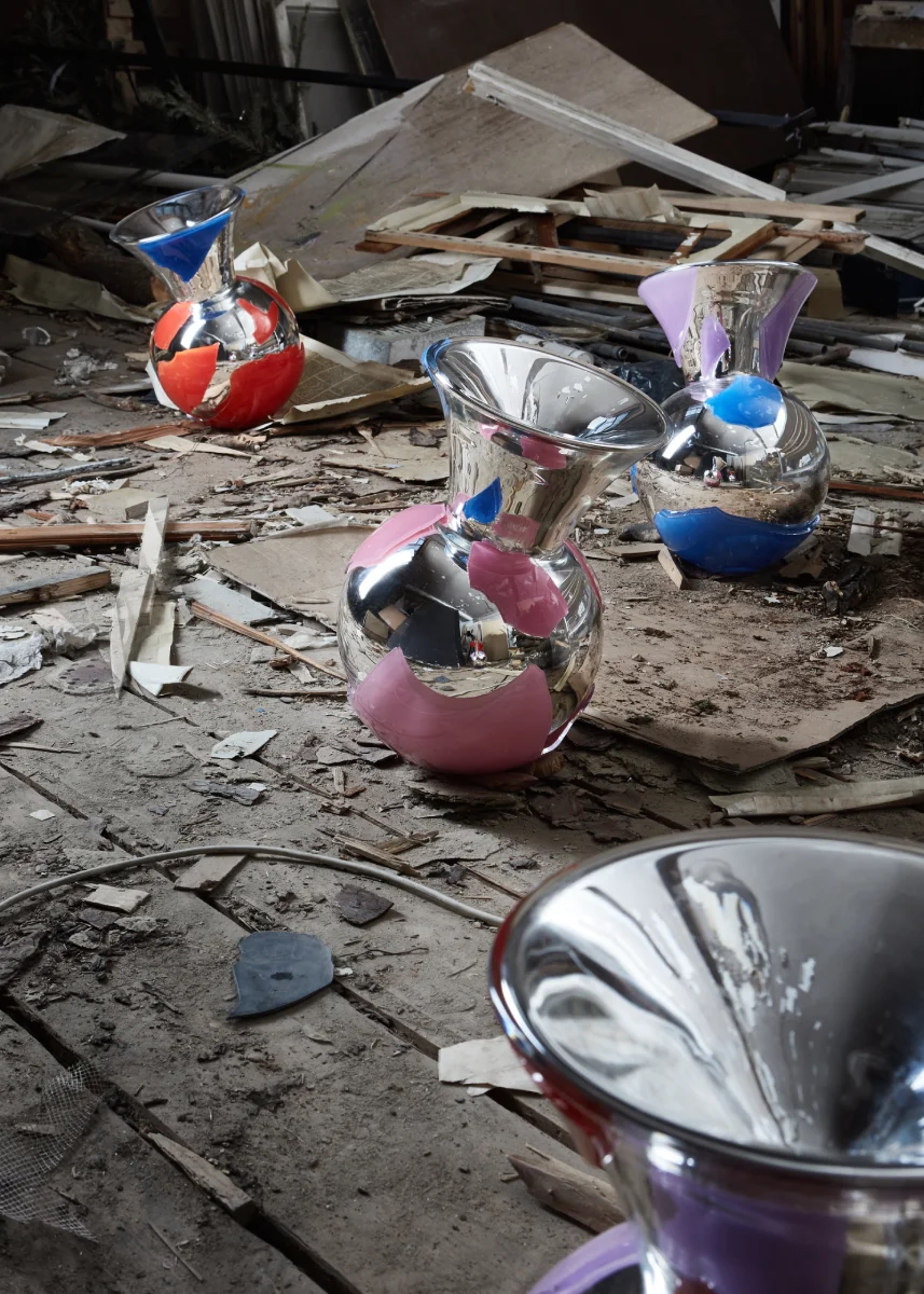 The vases are thoutght provoking, balancing between reality and illusion by imaginary space expansion, where the shards’ reflections intermingle with the real shards.